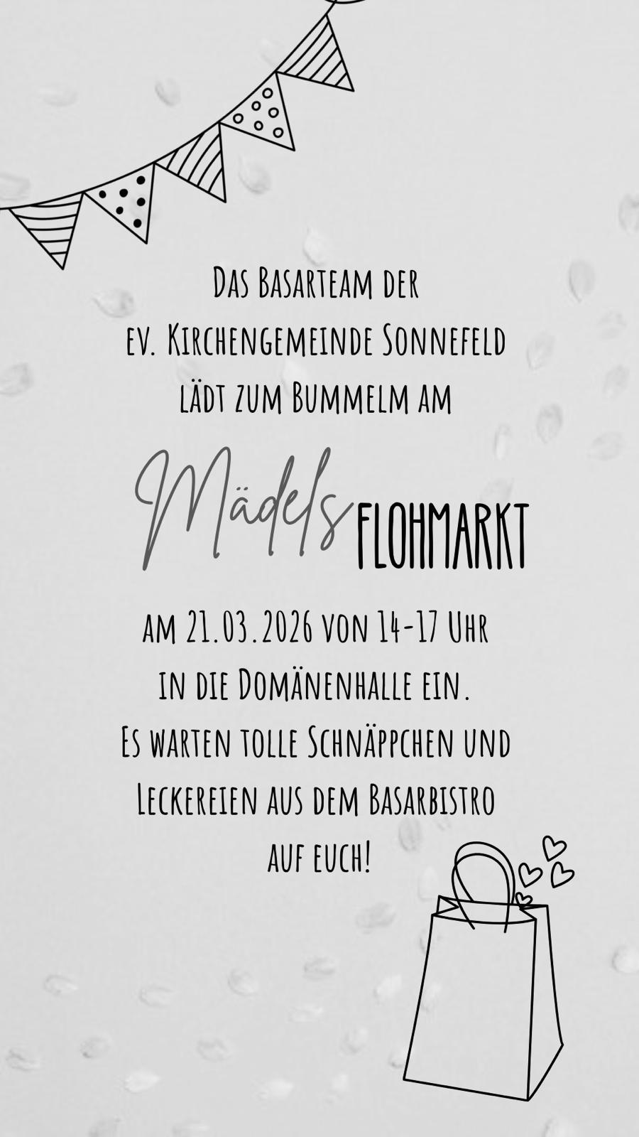 Am Samstag, 21. März 2026, findet in der Domänenhalle Sonnefeld ein Mädels-Flohmarkt statt. Von 14:00 bis 17:00 Uhr haben Besucherinnen und Besucher die Gelegenheit, in entspannter Atmosphäre nach gut erhaltenen […] |
