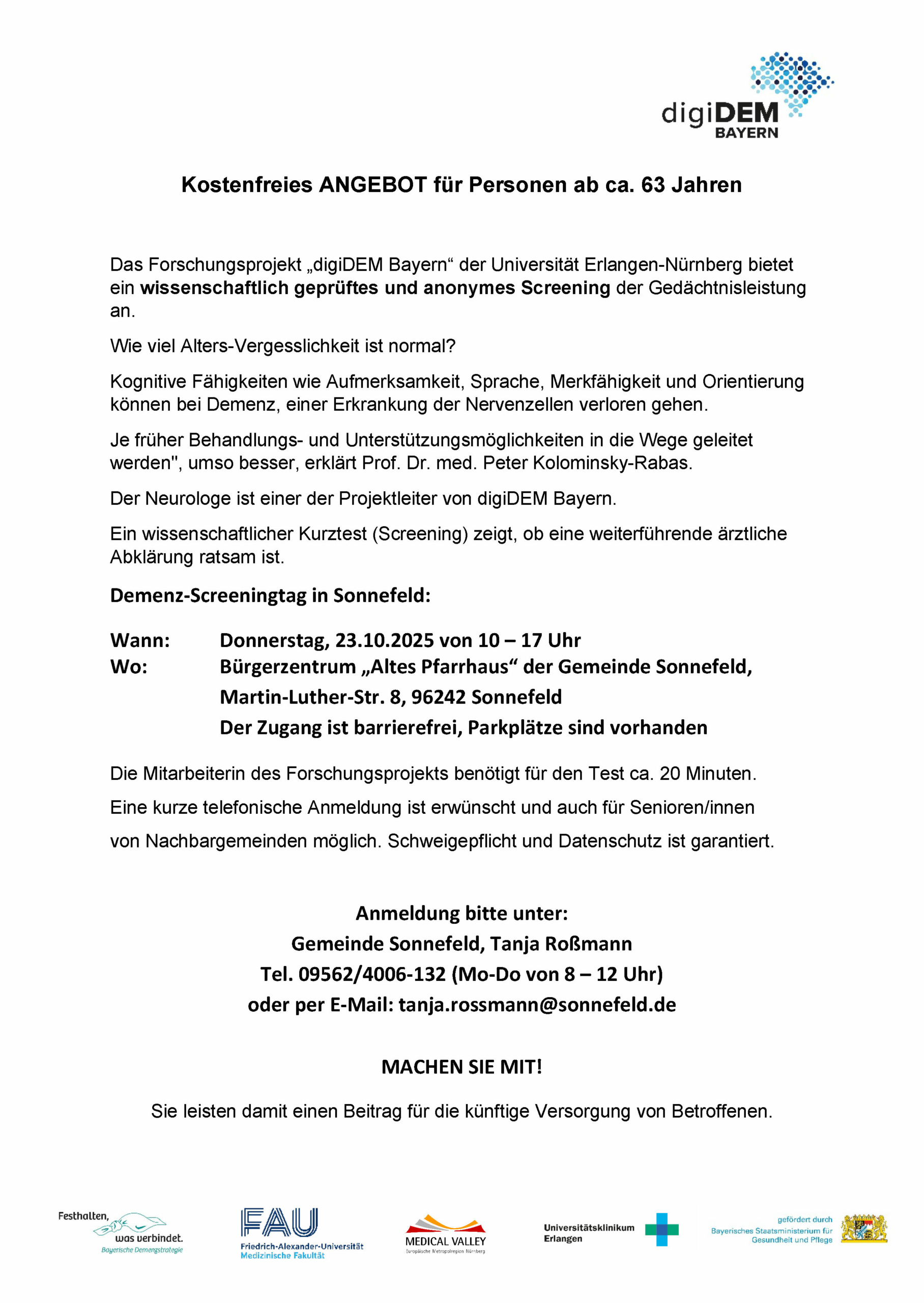 Demenz-Screeningtag in Sonnefeld – Kostenfreies Angebot für mehr Sicherheit